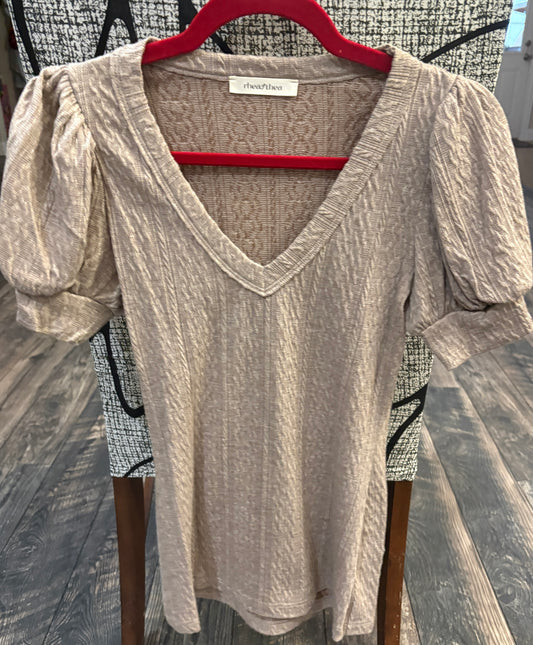 Thea & Rhea V Neck Blouse with Short Puffy Sleeves